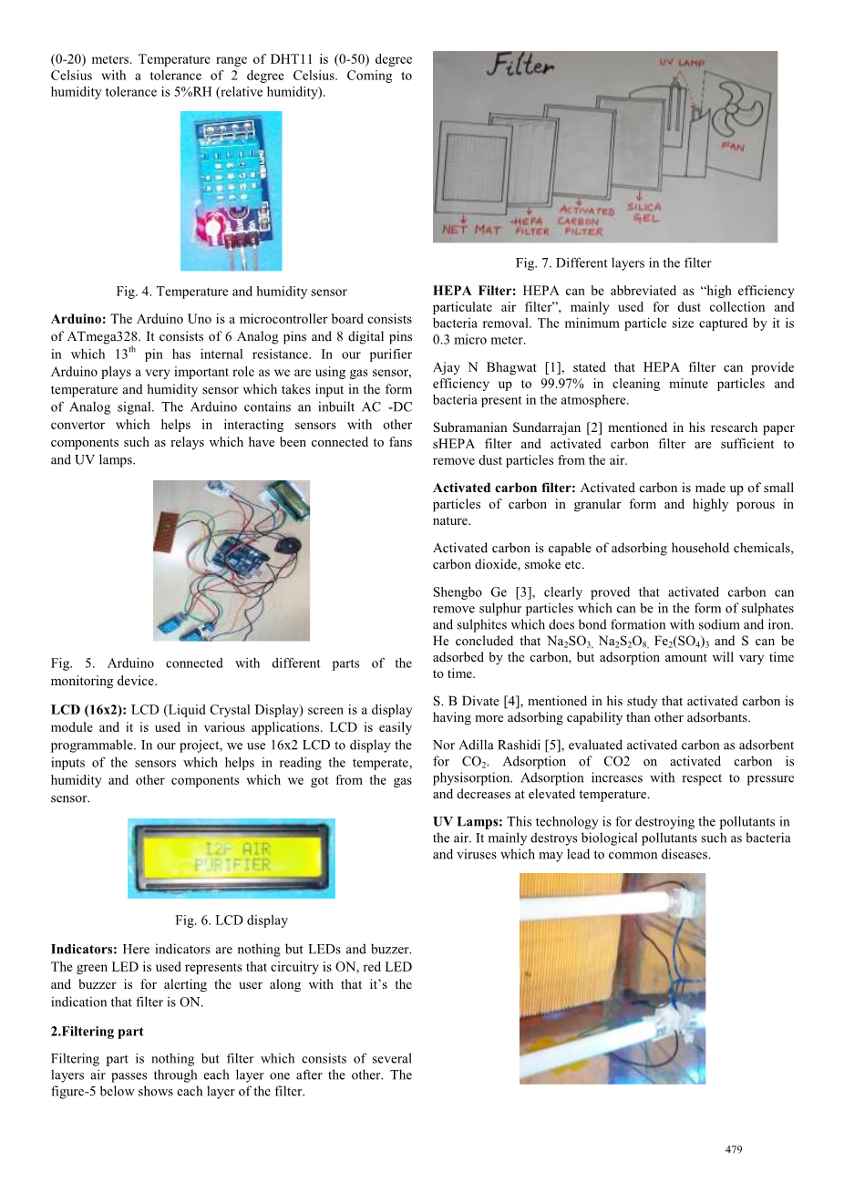 不纯净的空气被MQ2气体传感器检测到。气体传感器连接到负责其灵敏度的电阻器,无论何时气体传感器遇到空气中存在的任何气体电阻随传感器两端的电压而变化。该值赋予Arduino。温湿度传感器主要用于检查空气中的水分含量。该传感器由湿度传感元件和两个电极以及湿气捕集基板组成。由于Arduino检测到电极之间的湿气阻力发生变化。