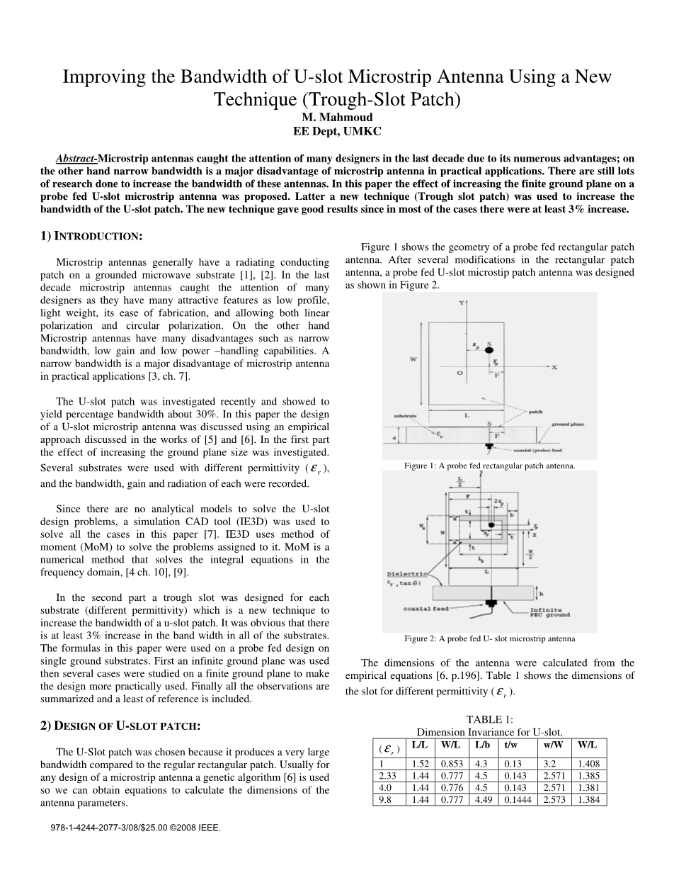 使用新技术改善U型槽微带天线的带宽(Trough slot patch)