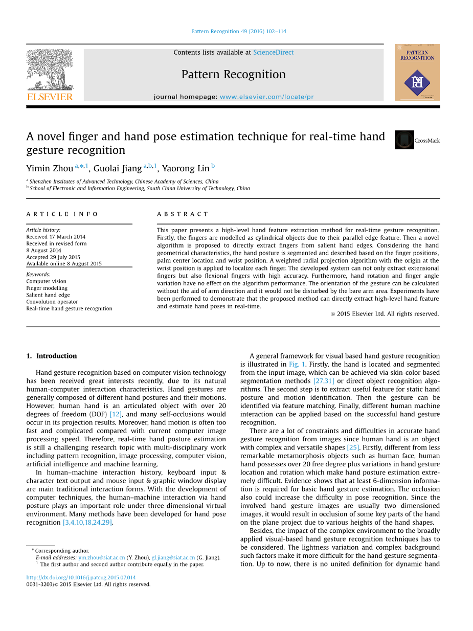 一种用于实时手势识别的手指和手的姿态估计技术外文翻译资料 2023-01-29 13:38:11 英语原文共 13 页,剩余内容已隐藏,支付完成后下载完整资料 资料编号:[150432],资料为PDF文档或Word文档,PDF文档可免费转换为Word 您需要先支付 30元 才能查看全部内容!立即支付 发小红书推广免费获取该资料资格。点击链接进入获取推广文案即可: Ai一键组稿 | 降AI率 | 降重复率 | 论文一键排版 PREVIOUS NEXT 您可能感兴趣的文章 基于FPGA建模实现2FSK的调制与解调设计开题报告 基于无线通信技术的家庭门铃系统程序设计文献综述 基于单片机的心率测试系统开题报告 WR-4频段E-面波导功分器的设计研究文献综述 水情智能感知和控制系统在智慧城市中的应用文献综述 基于图像处理技术的位移测量系统文献综述 基于视频的人脸表情识别算法研究与系统设计文献综述 线极化与圆极化可重构天线的设计与研究开题报告 基于视频监控的人跌倒行为识别的编程实现文献综述 基于Unity3D引擎的射击游戏设计与实现文献综述