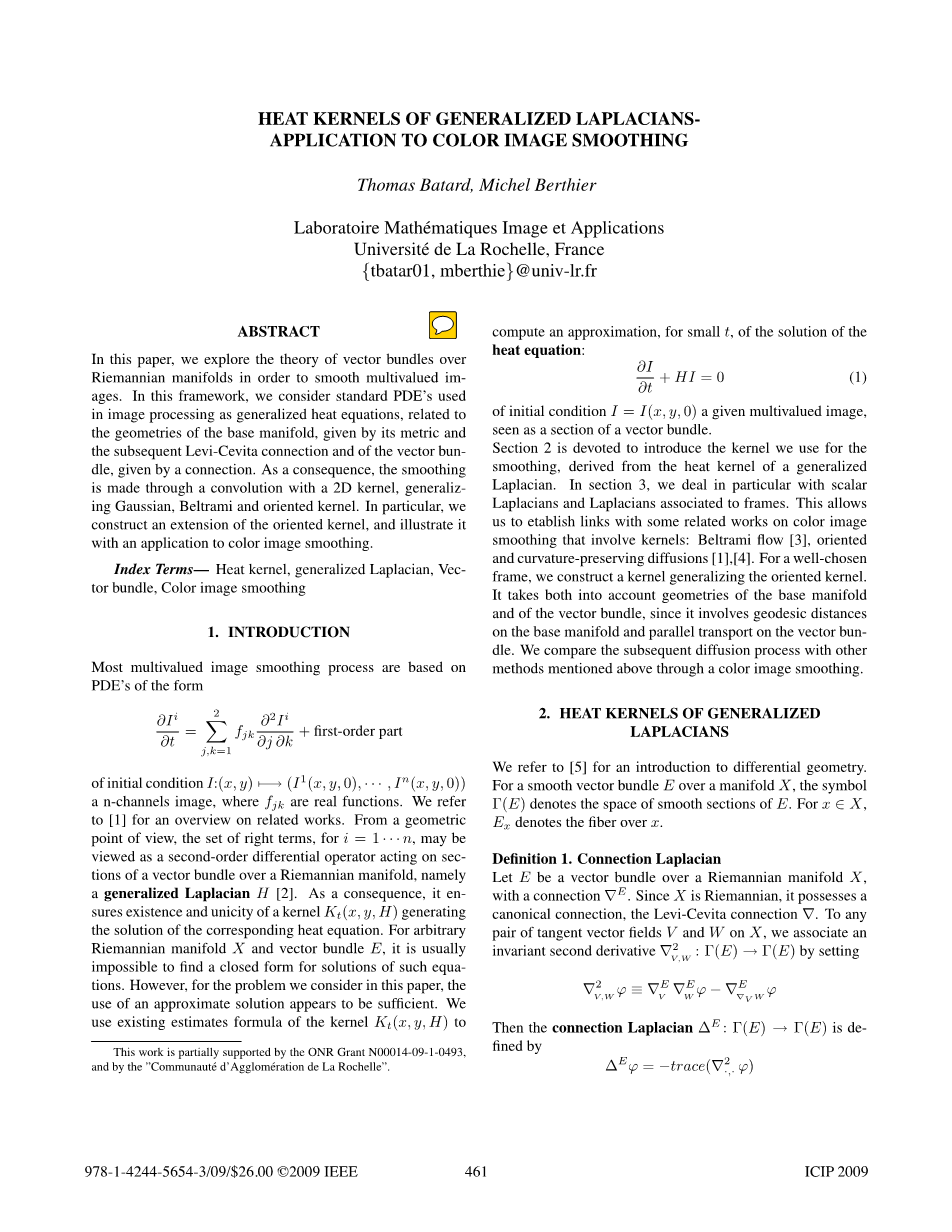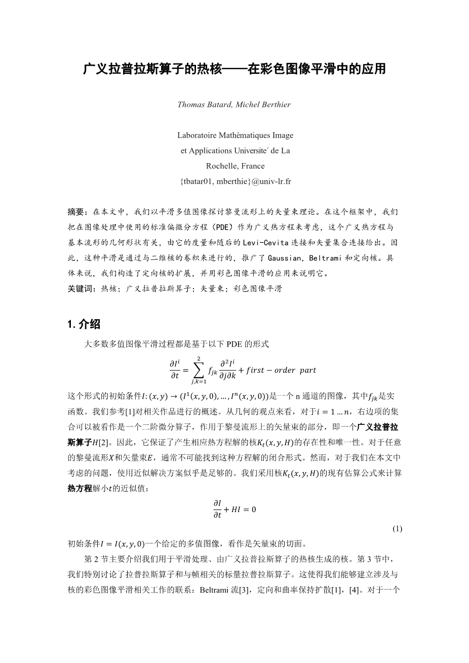广义拉普拉斯算子的热核——在彩色图像平滑中的应用外文翻译资料