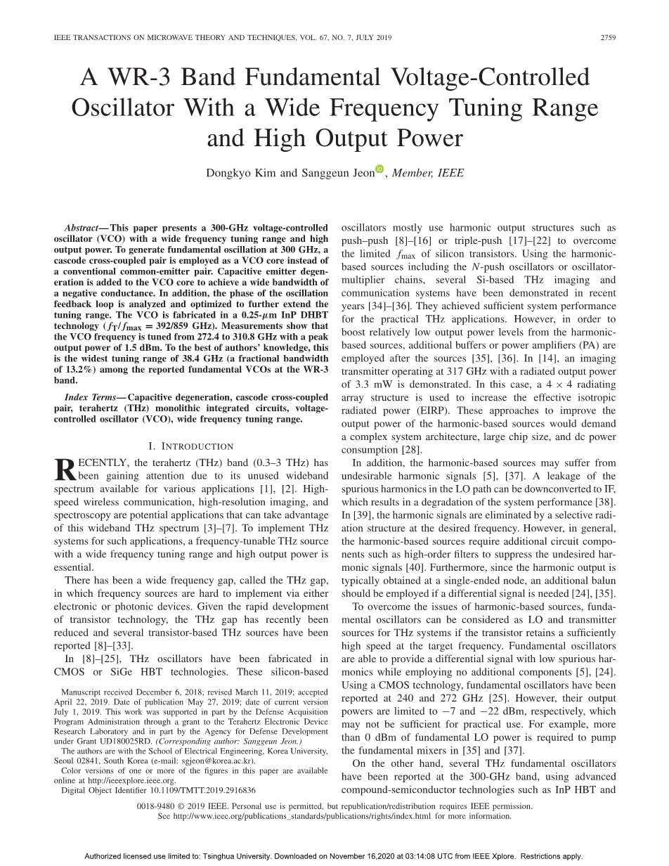 Dongkyo Kim和Sanggeun Jeon,IEEE成员