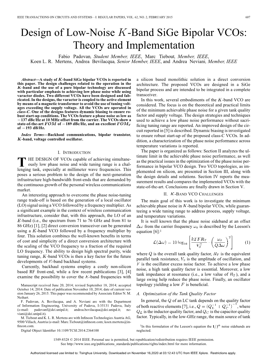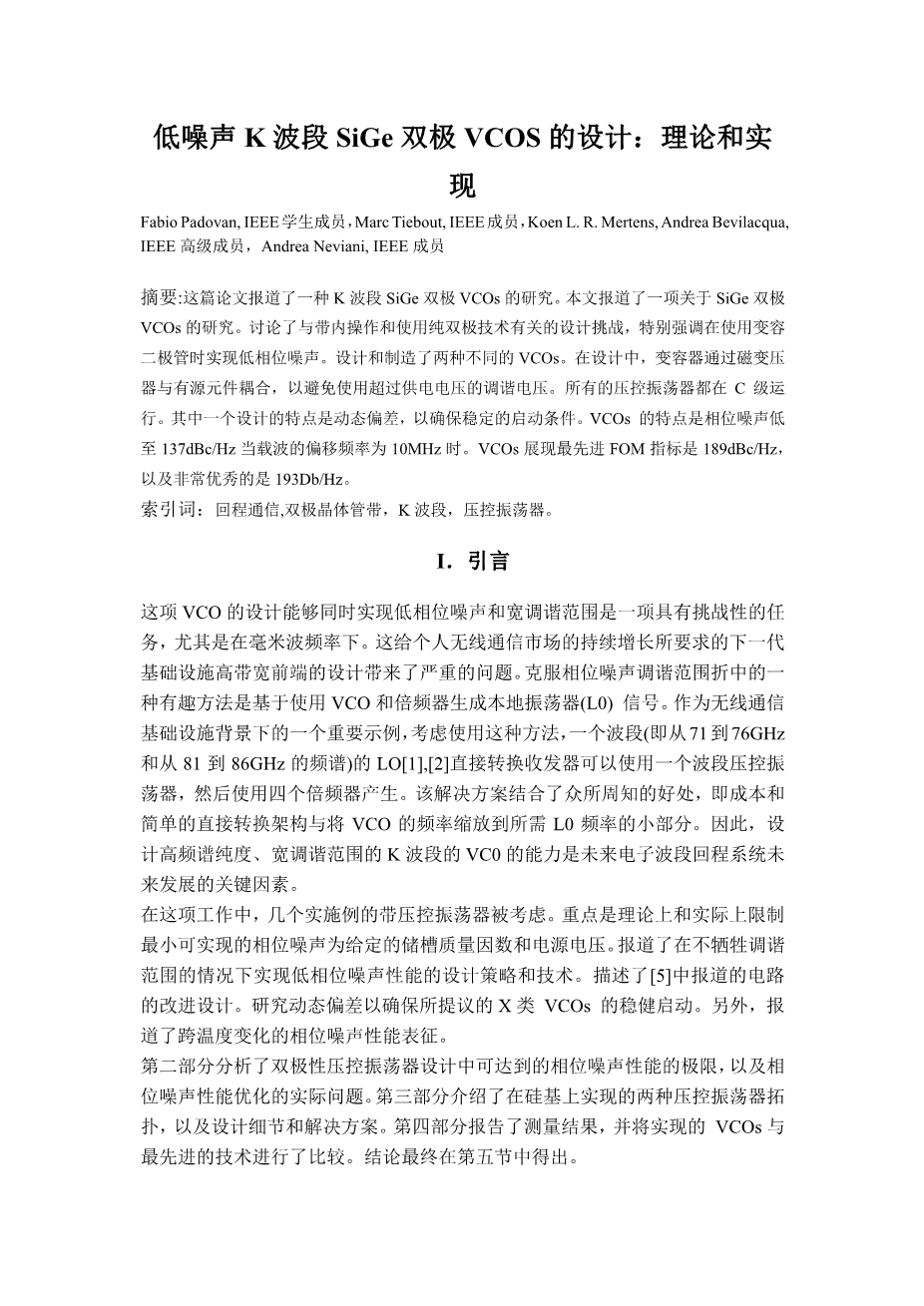 低噪声K波段SiGe双极VCOS的设计:理论和实现外文翻译资料