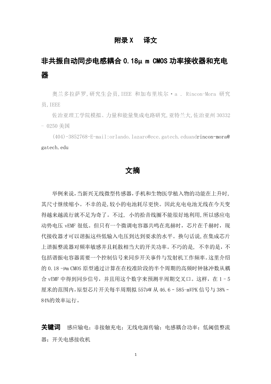 非共振自动同步电感耦合0.18μm CMOS功率接收器和充电器外文翻译资料 2023-07-31 10:18:39 英语原文共 28 页,剩余内容已隐藏,支付完成后下载完整资料 英语译文共 38 页,剩余内容已隐藏,支付完成后下载完整资料 资料编号:[614116],资料为PDF文档或Word文档,PDF文档可免费转换为Word 您需要先支付 30元 才能查看全部内容!立即支付 发小红书推广免费获取该资料资格。点击链接进入获取推广文案即可: Ai一键组稿 | 降AI率 | 降重复率 | 论文一键排版 PREVIOUS NEXT 您可能感兴趣的文章 基于FPGA建模实现2FSK的调制与解调设计开题报告 基于无线通信技术的家庭门铃系统程序设计文献综述 基于单片机的心率测试系统开题报告 WR-4频段E-面波导功分器的设计研究文献综述 水情智能感知和控制系统在智慧城市中的应用文献综述 基于图像处理技术的位移测量系统文献综述 基于视频的人脸表情识别算法研究与系统设计文献综述 线极化与圆极化可重构天线的设计与研究开题报告 基于视频监控的人跌倒行为识别的编程实现文献综述 基于Unity3D引擎的射击游戏设计与实现文献综述
