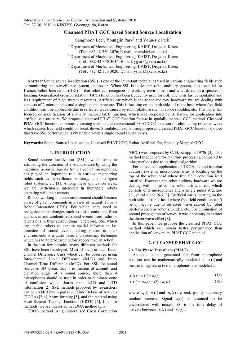 题目:基于Cleansed PHAT GCC的声源定位外文翻译资料