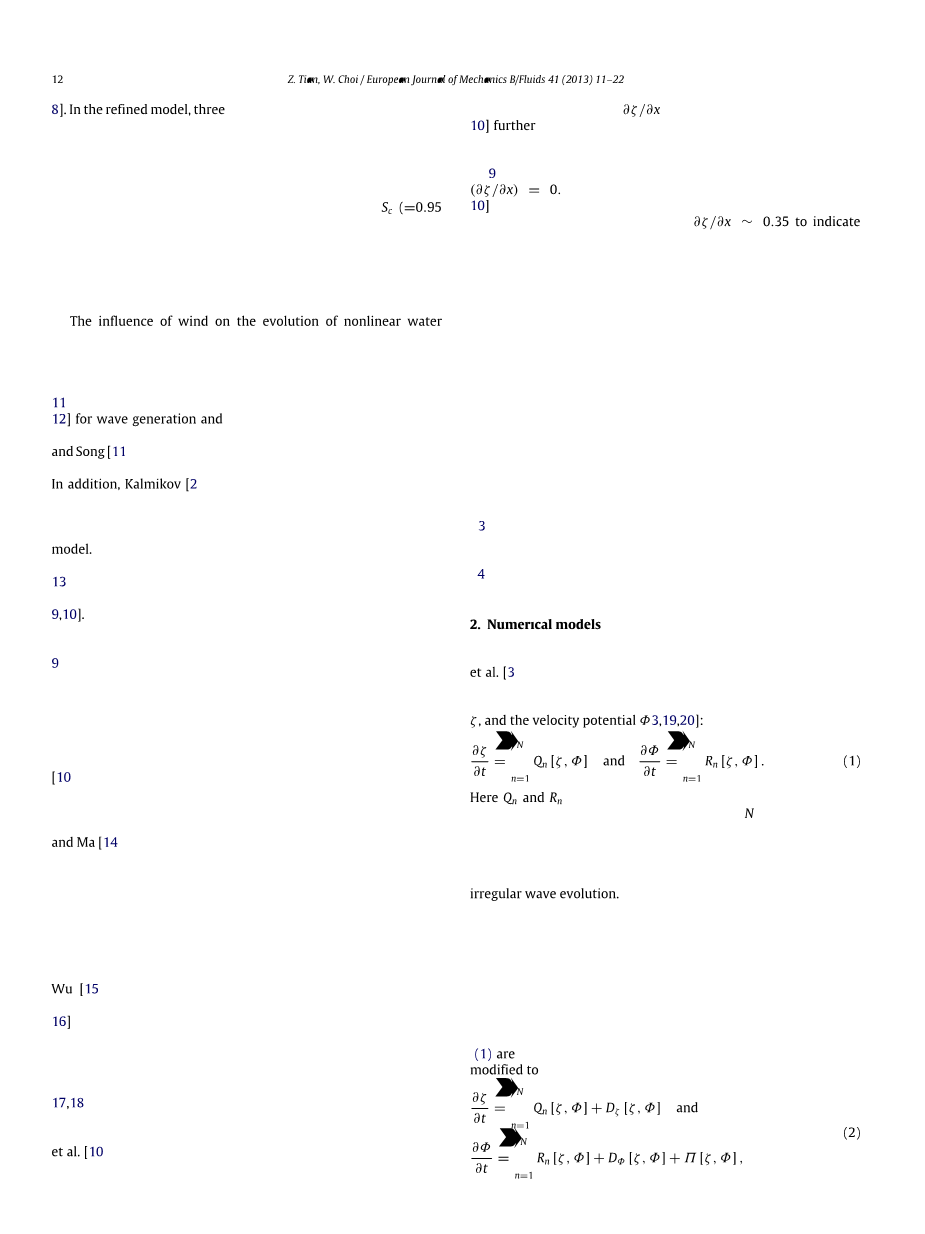 为了预测水波的演化,Westetal开发了一种基于渐近扩展的非线性波模型,其中波动力由自由表面上的表面高程zeta;和速度势Phi;的非线性演化方程的以下系统控制【13】: (1)