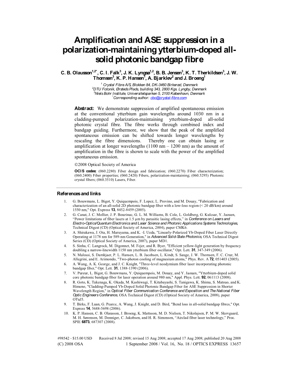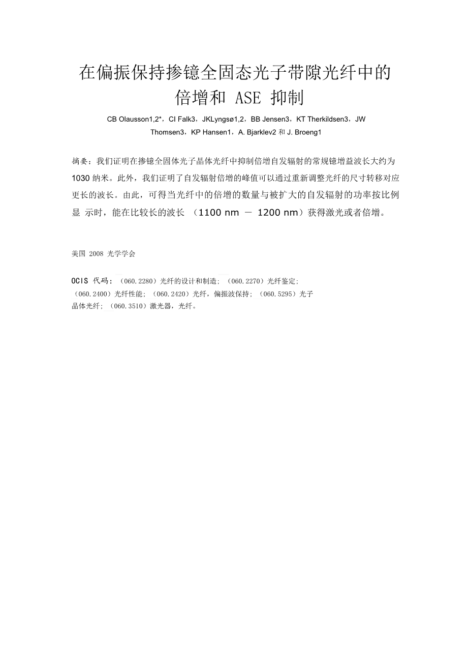 在偏振保持掺镱全固态光子带隙光纤中的倍增和ASE 抑制.外文翻译资料 2023-02-25 12:11:13 英语原文共 6 页,剩余内容已隐藏,支付完成后下载完整资料 英语译文共 9 页,剩余内容已隐藏,支付完成后下载完整资料 资料编号:[30461],资料为PDF文档或Word文档,PDF文档可免费转换为Word 您需要先支付 30元 才能查看全部内容!立即支付 发小红书推广免费获取该资料资格。点击链接进入获取推广文案即可: Ai一键组稿 | 降AI率 | 降重复率 | 论文一键排版 PREVIOUS NEXT 您可能感兴趣的文章 基于旋光效应的三波长溶液浓度测量系统设计与实现文献综述 可见-近红外波段ITO透明导电玻璃的介电函数性质文献综述 基于以太网数据报文的同步机制及实现文献综述 应变[111]晶向硅纳米线的光电性质研究开题报告 钙钛矿型CH3NH3PbX3晶体光电性能的研究开题报告 金属ZnO肖特基二极管的特性及优化设计文献综述 二氧化碳在强电场下的光谱性质研究文献综述 红外吸收型CO2气体传感器的仿真设计开题报告 稳定的ZnO薄膜的白光发射研究开题报告 NEA GaN光电阴极的量子效率研究开题报告