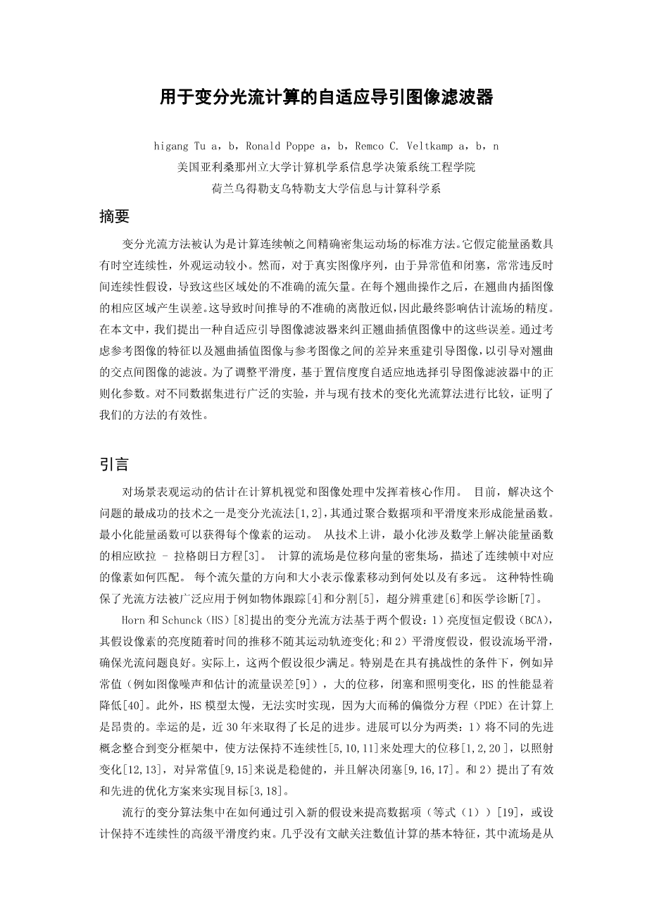 用于变分光流计算的自适应导引图像滤波器外文翻译资料