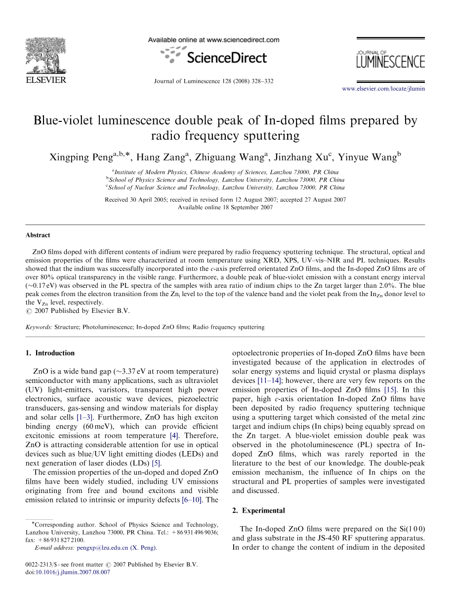 用射频溅射法制备具有蓝紫双峰发射的掺In薄膜外文翻译资料 2023-03-03 17:34:37 英语原文共 5 页,剩余内容已隐藏,支付完成后下载完整资料 英语译文共 6 页,剩余内容已隐藏,支付完成后下载完整资料 资料编号:[18312],资料为PDF文档或Word文档,PDF文档可免费转换为Word 您需要先支付 30元 才能查看全部内容!立即支付 发小红书推广免费获取该资料资格。点击链接进入获取推广文案即可: Ai一键组稿 | 降AI率 | 降重复率 | 论文一键排版 PREVIOUS NEXT 您可能感兴趣的文章 基于旋光效应的三波长溶液浓度测量系统设计与实现文献综述 可见-近红外波段ITO透明导电玻璃的介电函数性质文献综述 基于以太网数据报文的同步机制及实现文献综述 应变[111]晶向硅纳米线的光电性质研究开题报告 钙钛矿型CH3NH3PbX3晶体光电性能的研究开题报告 金属ZnO肖特基二极管的特性及优化设计文献综述 二氧化碳在强电场下的光谱性质研究文献综述 红外吸收型CO2气体传感器的仿真设计开题报告 稳定的ZnO薄膜的白光发射研究开题报告 NEA GaN光电阴极的量子效率研究开题报告
