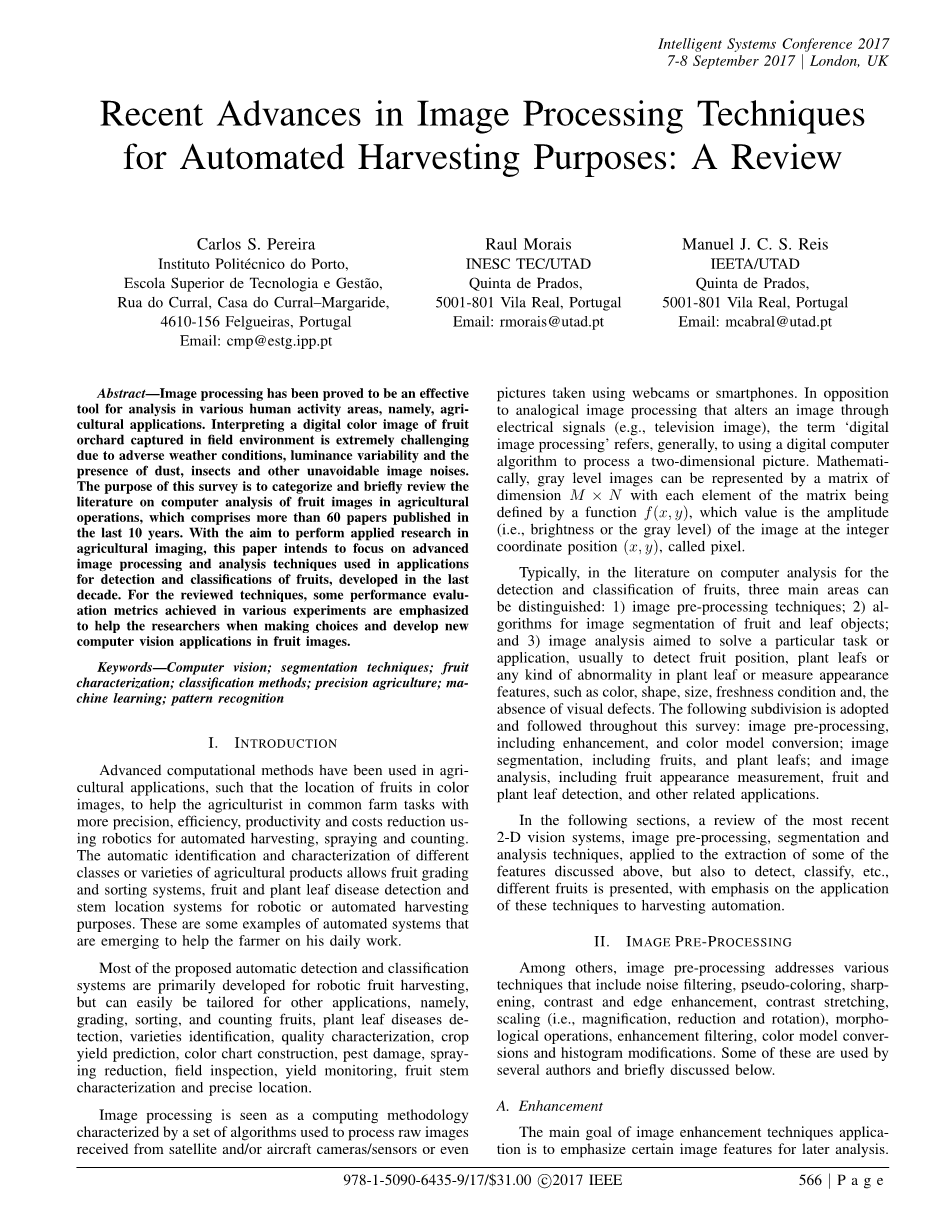 (标注:图表版权来自于Carlos S.Pereira. Recent Advances in Image Processing Techniques for Automated Harvesting Purposes: A Review[J].Intelligent Systems Conference 2017 7-8 September 2017 )