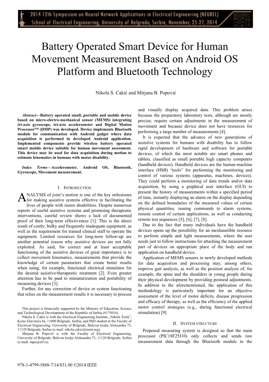基于AndroidOS平台和蓝牙技术的电池供电智能人体运动测量设备