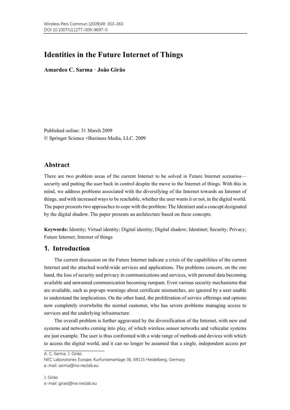 未来物联网的身份外文翻译资料