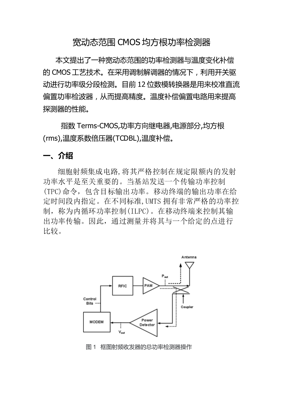宽动态范围CMOS均方根功率检测器外文翻译资料 2023-05-23 15:53:07 英语原文共 13 页,剩余内容已隐藏,支付完成后下载完整资料 英语译文共 17 页,剩余内容已隐藏,支付完成后下载完整资料 资料编号:[612952],资料为PDF文档或Word文档,PDF文档可免费转换为Word 您需要先支付 30元 才能查看全部内容!立即支付 发小红书推广免费获取该资料资格。点击链接进入获取推广文案即可: Ai一键组稿 | 降AI率 | 降重复率 | 论文一键排版 PREVIOUS NEXT 您可能感兴趣的文章 基于机器学习的图像分类研究文献综述 用于移动手机的五频段天线设计文献综述 无线多址接入信道的信息年龄研究文献综述 基于N76E616的中央空调集中控制系统文献综述 基于BLE4.0的数字张力计手机端APP的开发文献综述 基于Spring和Mybatis的个人在线云笔记系统设计实现开题报告 市民服务大厅无声排队叫号系统的设计与实现开题报告 基于FPGA的脉冲参数测量仪的设计开题报告 面向工业机器人的车间能耗管理与分析服务平台设计与实现文献综述 超宽带穿墙雷达目标成像方法研究开题报告