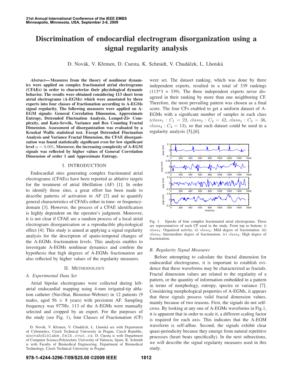 D. Novaacute;k, V. Kremen, V. Chudaacute;cek, L. Lhotskaacute;在捷克共和国的布拉格捷克理工大学的控制论系,xnovakd1@labe.felk.cvut.cz D. Cuesta在西班牙的理工巴伦西亚大学计算机科学系,K. Schmidt在布拉格捷克技术大学生物医学技术系的生物医学工程学院。
