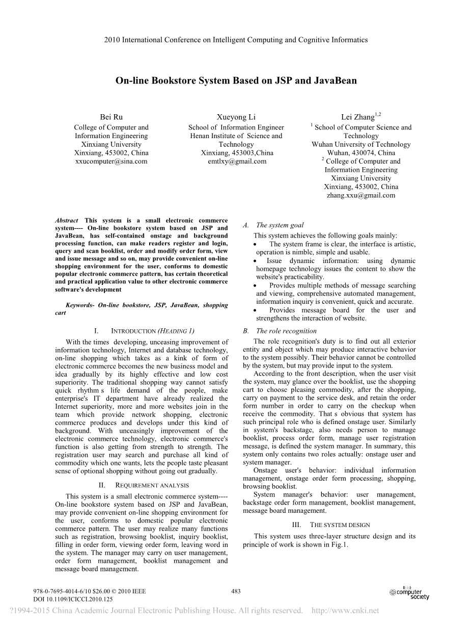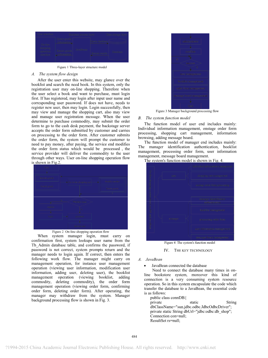 摘要 -这个系统是一个小型的电子商务系统----基于JSP和Java Bean的在线书店系统。具有独立的前后台处理功能,可使读者注册、登录、查询和浏览图书,下订单和修改订单,查看并发出留言等,可以为用户提供方便的上网购物环境,符合国内流行的电子商务模式,对其他电子商务软件的开发具有有一定的理论和实际应用价值。
