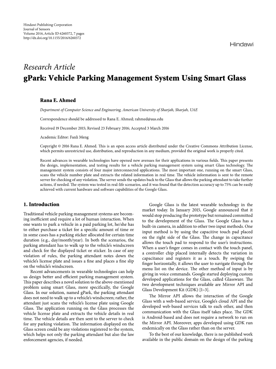 我们所知,没有出版工作在公共领域的设计停车场管理系统使用谷歌眼镜。以下是一些相关的报告文学作品。