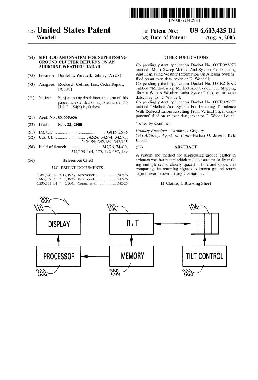 本发明是一种提高航空电子天气雷达地面杂波抑制质量的装置和方法,旨在满足上述需求,提供先前陈述的对象,包括上面列出的功能,并实现已经明确的优势。 本发明以“错误识别”方式在某种意义中执行,即将天气错误识别为地面杂波已经大大减少了。 本发明在这个意义上还以“无先导干预”的方式进行,导向倾斜角调整和多次返回的心理分析。“过滤掉”的地面杂乱现象已经减少。