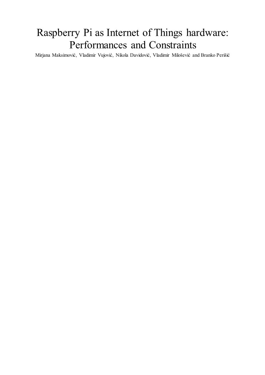 本文的其余部分组织如下。树莓PI的描述,其核心部件,并与其他可用的物联网平台的详细比较,在第2节。最后一节提供总结意见总结树莓派作为物联网硬件的优点和缺点。
