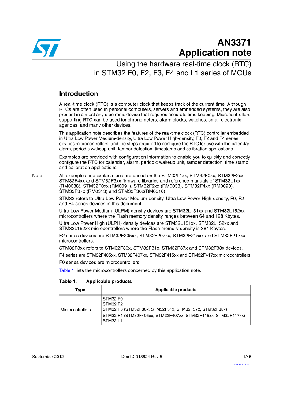 所有示例和说明均基于STM32L1xx,STM32F0xx,STM32F2xx,STM32F4xx和STM32F3