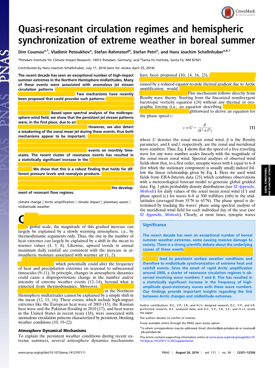 Dim Coumoua,1,Vladimir Petoukhova,Stefan Rahmstorfa,Stefan Petria,Hans Joachim Schellnhubera,b,1