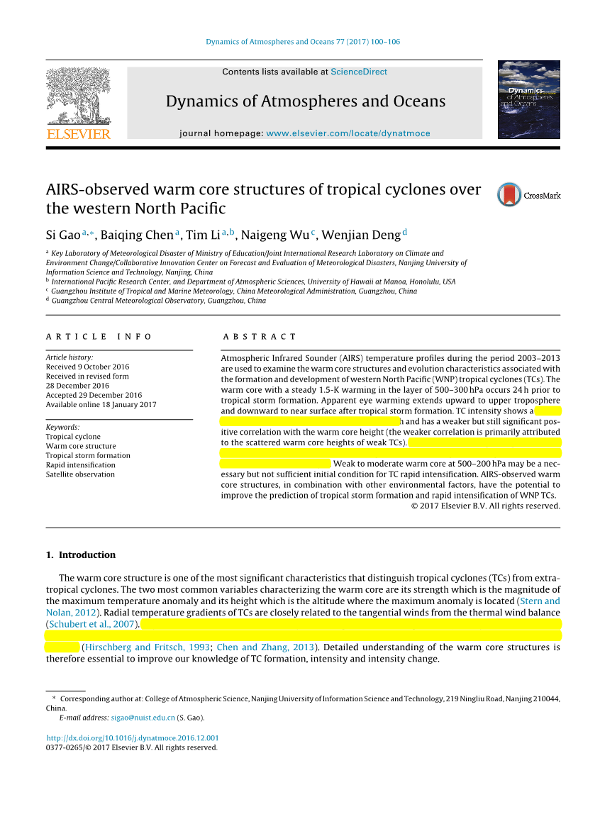 AIRS观测的西北太平洋热带气旋暖心结构外文翻译资料