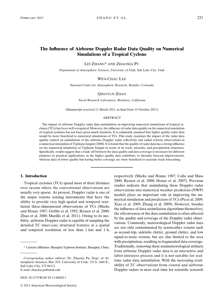 LEI ZHANG,ZHAOXIA PU,WEN-CHAU LEE,QINGYUN ZHAO