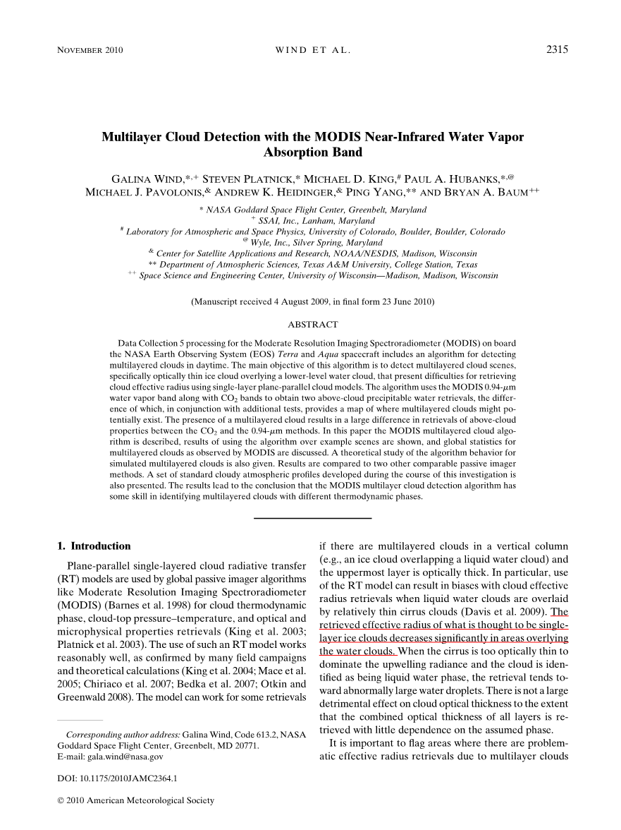 GALINA WIND, STEVEN PLATNICK, MICHAEL D. KING, PAUL A. HUBANKS,MICHAEL J. PAVOLONIS, ANDREW K. HEIDINGER, PING YANG, AND BRYAN A. BAUM