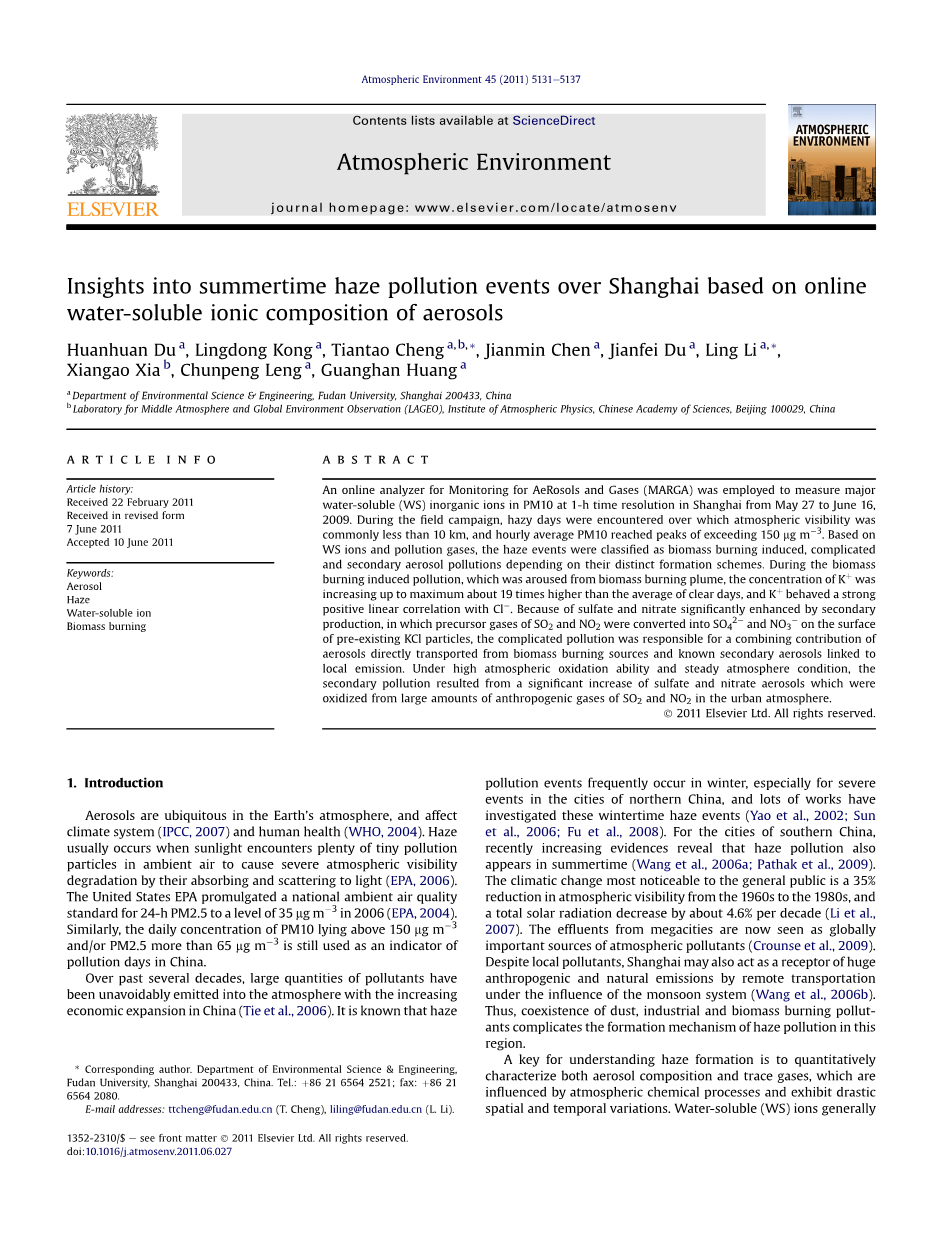 关键词:气溶胶,霾,水溶性粒子,生物质燃烧。