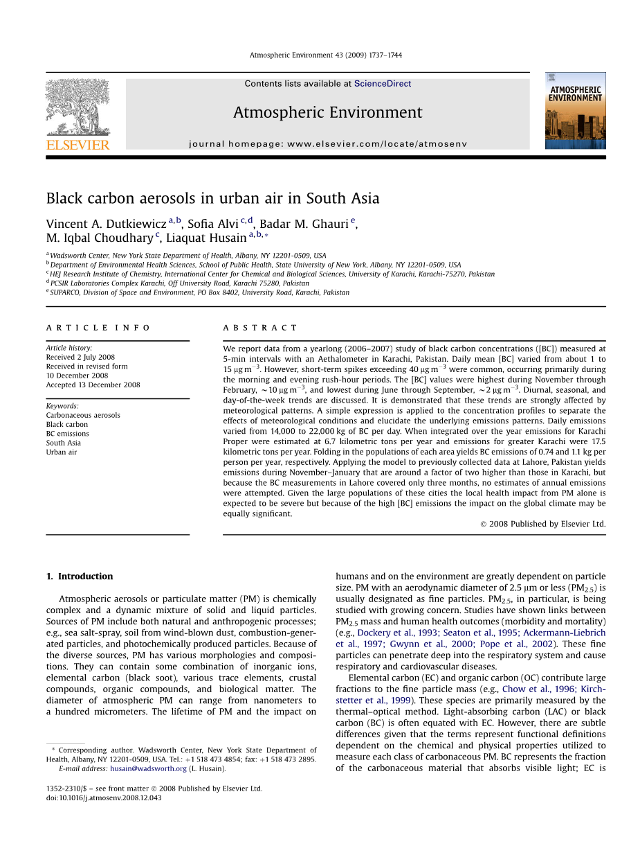 由于南亚碳质气溶胶的总体数据稀少,我们对巴基斯坦卡拉奇的黑碳气溶胶进行了为期一年的研究。2006年4月至2007年4月在卡拉奇进行的全年黑碳仪测量结果用于调查这个沿海大城市黑碳气溶胶浓度的时间趋势。这些结果还用于评估潜在的排放源及其排放量。