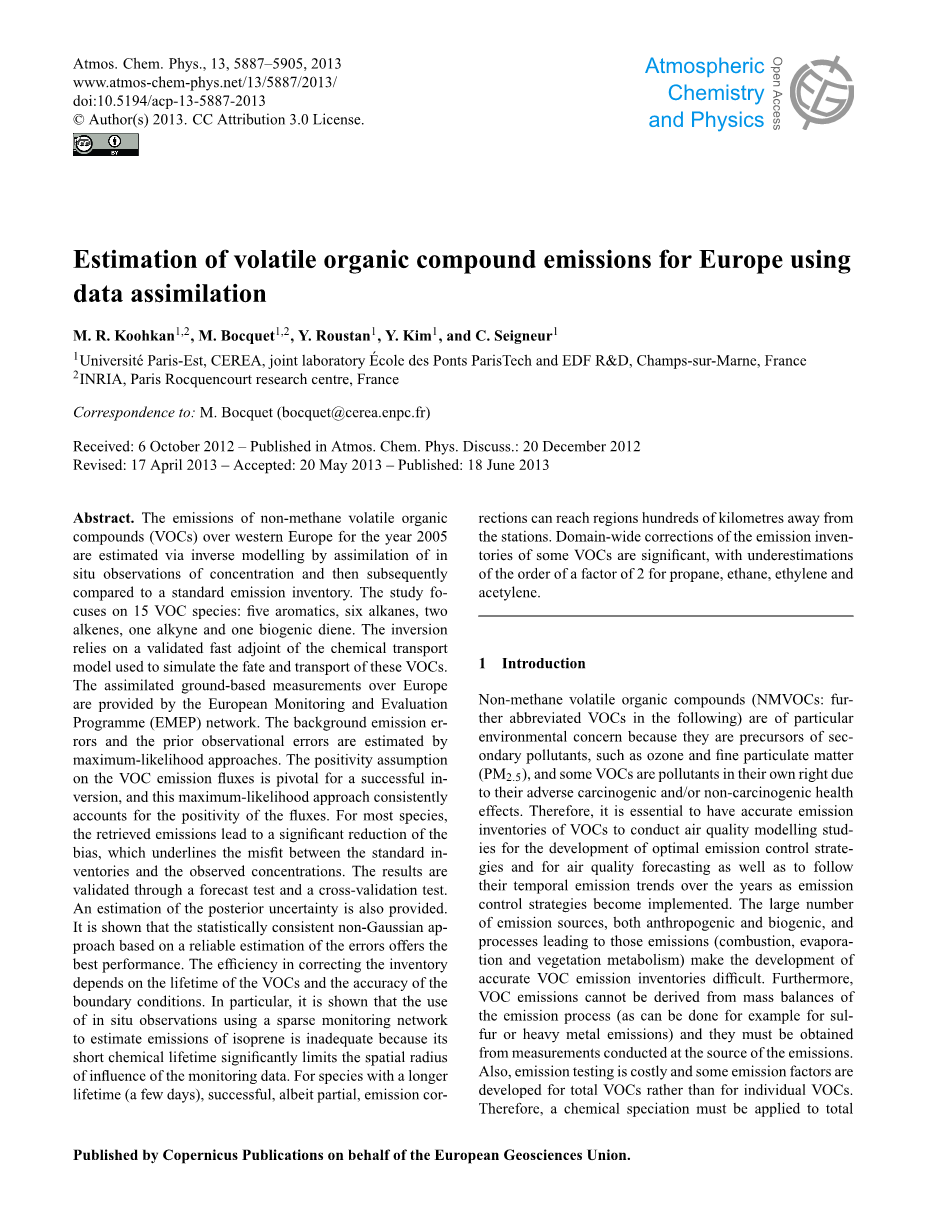 M. R. Koohkan1,2, M. Bocquet1,2, Y. Roustan1, Y. Kim1, and C. Seigneur1