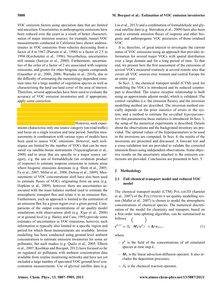 在第2节中,介绍了用于模拟VOCs的化学传输模型(CTM),并描述了其相应的简化模型。利用近似的伴随模型建立了源受体关系,并进行了验证。对控制变量(即发射通量)和反演建模方法进行了描述。反演方法的关键在于对系统中误差的先验统计,以及估计这些统计数据的所谓超参数的方法。第3节描述了数值实验的设置。提供了观察资料和背景资料。计算了在反版本中使用的超参数的最优值。在第4节中,给出了逆序的结果并进行了讨论。提供了一个预测测试和交叉验证测试,以通过独立的观察来验证修正的发射通量。给出了一些关于排放修正的不确定性的客观结果。结论在第五节中提出。