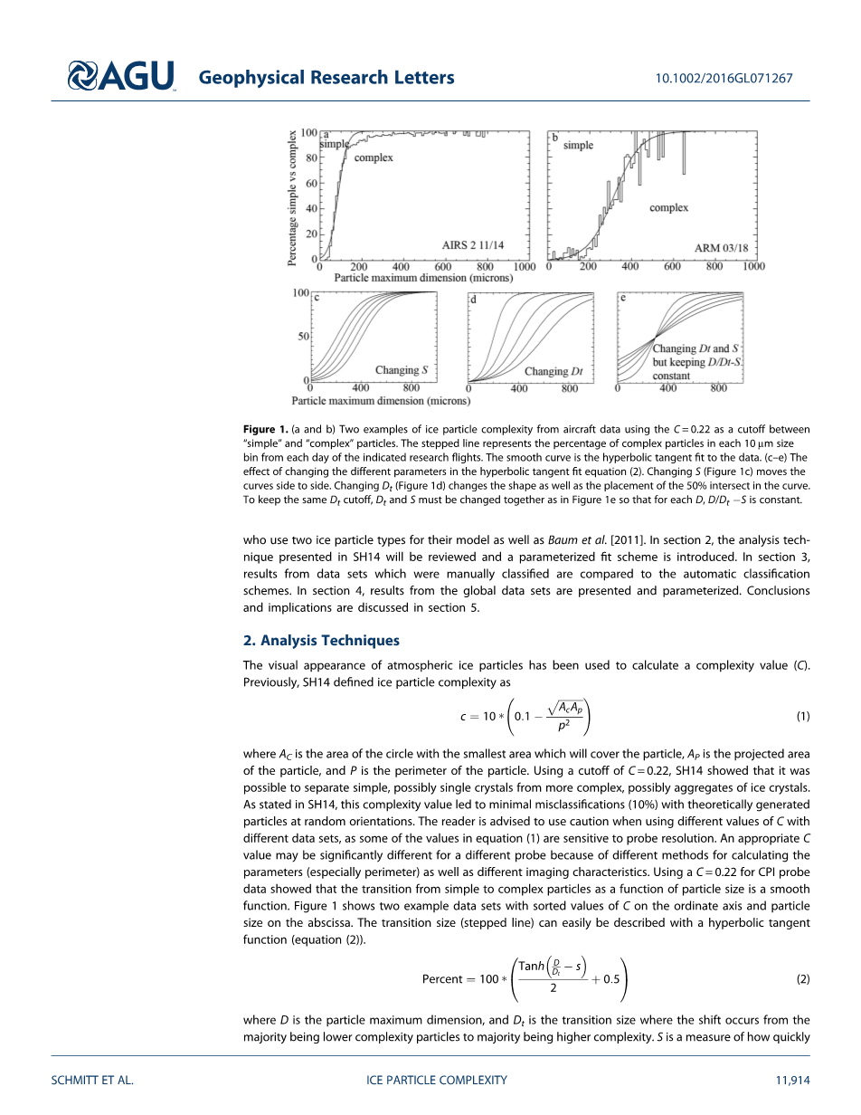 大气冰粒子的视觉外观已被用于计算的复杂性值(c)。此前,SH14定义冰粒子的复杂性