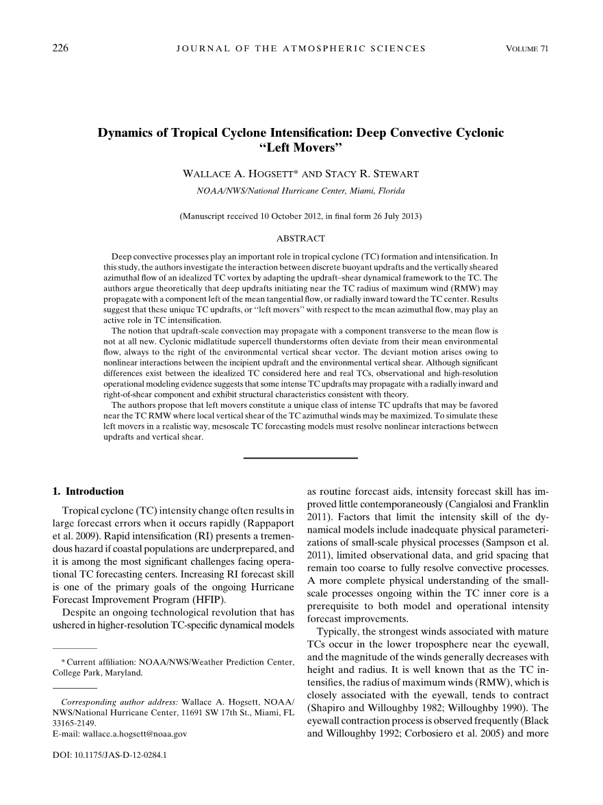 这项研究特别重要的是,当正在加强的TC附近有强烈的上升气流发展时,它们通常都是处在一个垂直切变涡流尺度的环境中。换句话说,在热心的旋风中,对流层底部的切向风要比中上层的切向风大。众所周知,较强的垂直切变能使上升气流偏离平均环境气流从而通过与切开的环境气流发生非线性作用产生强烈的旋转,因此足够强的垂直切变是影响上升型湿对流发展(比如,Klemp,1987)的重要因素。为了弄清这些中纬度超级单体风暴的发展过程,科学家们已经做了很多研究了。