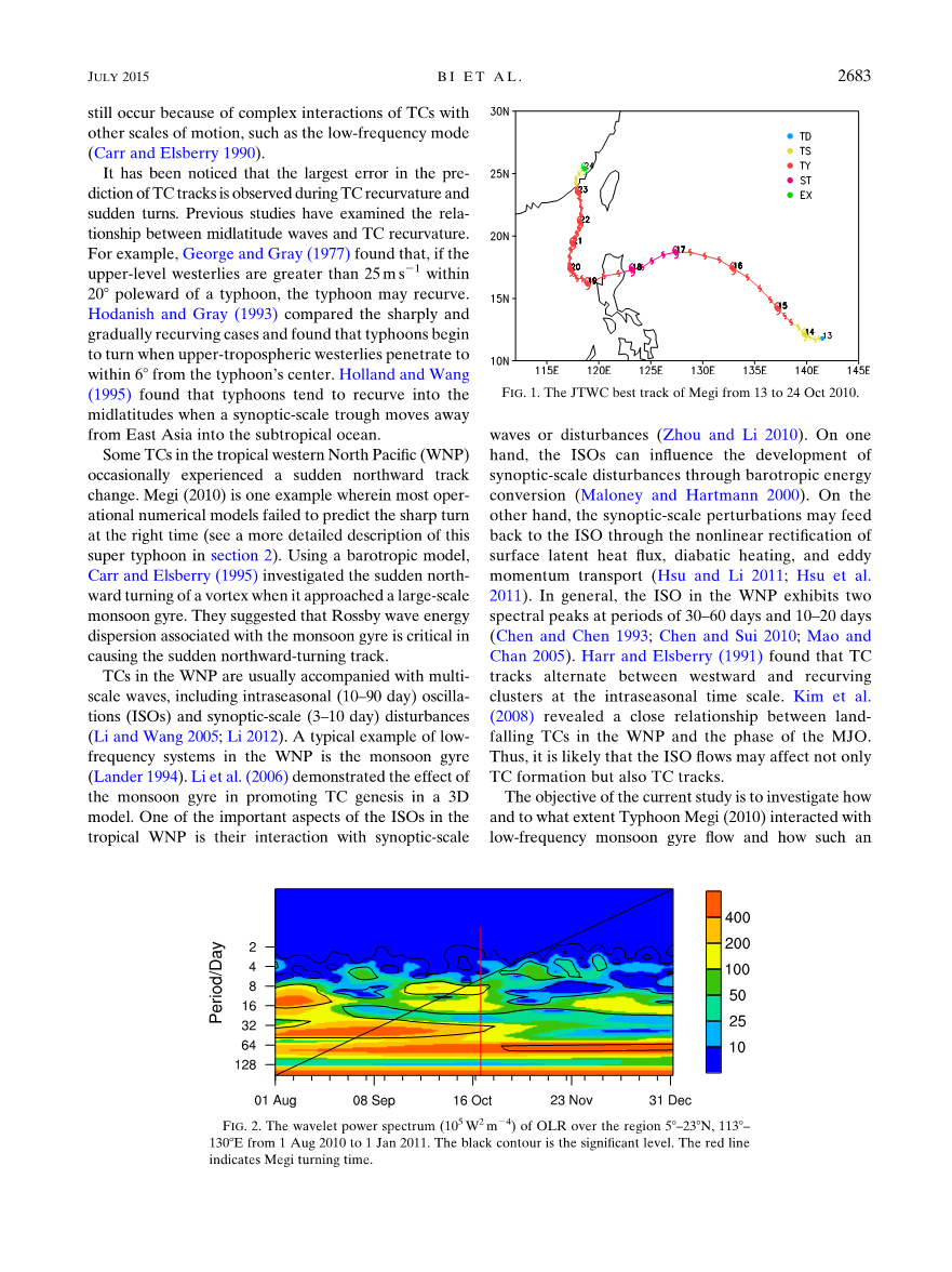 在NO-MG模拟中台风在跨过菲律宾之后继续西移,没有突然北折。结果显示低频MG模式和它与Megi之间的相互作用可能是引起台风北折的必要条件。