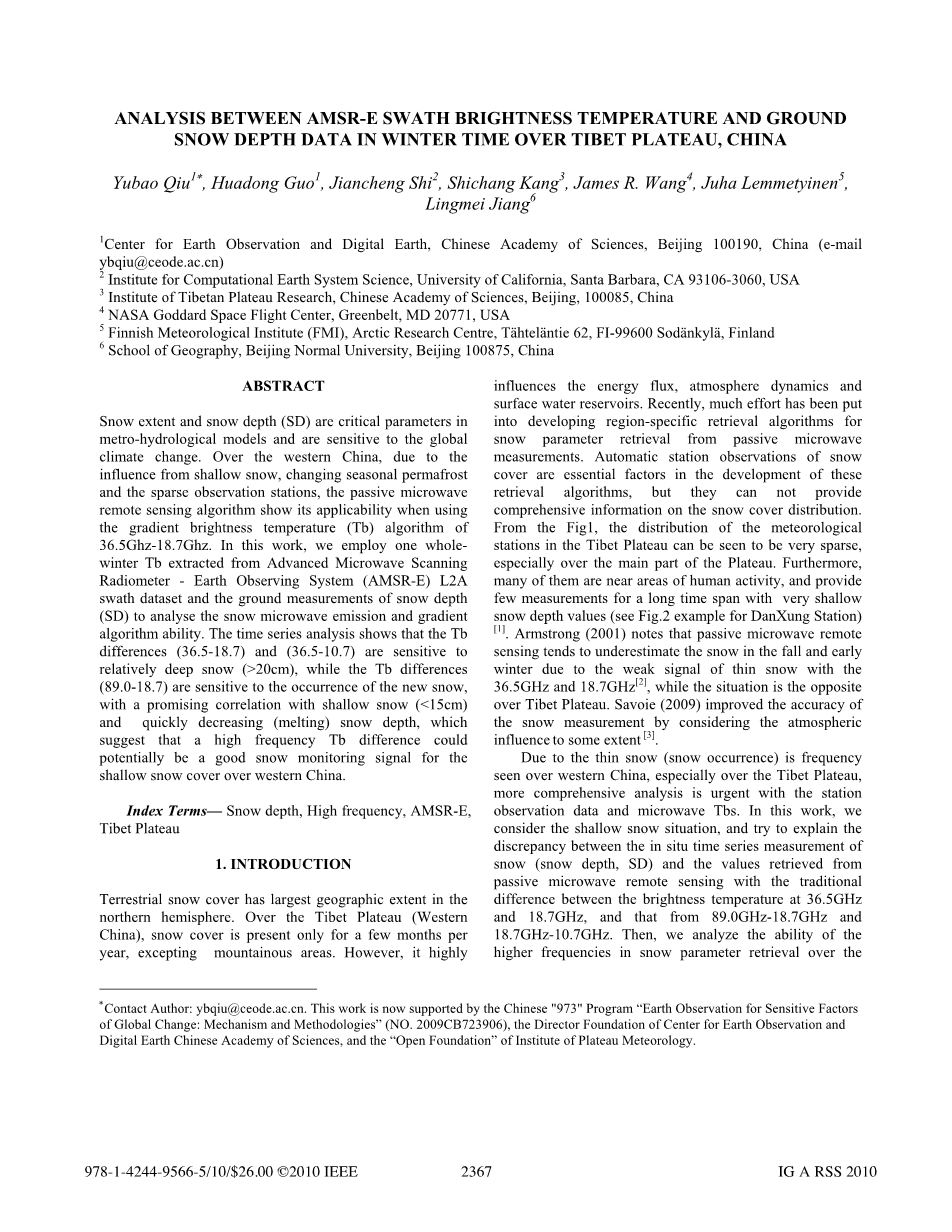 Yubao Qiu1, Huadong Guo1, Jiancheng Shi2, Shichang Kang3,