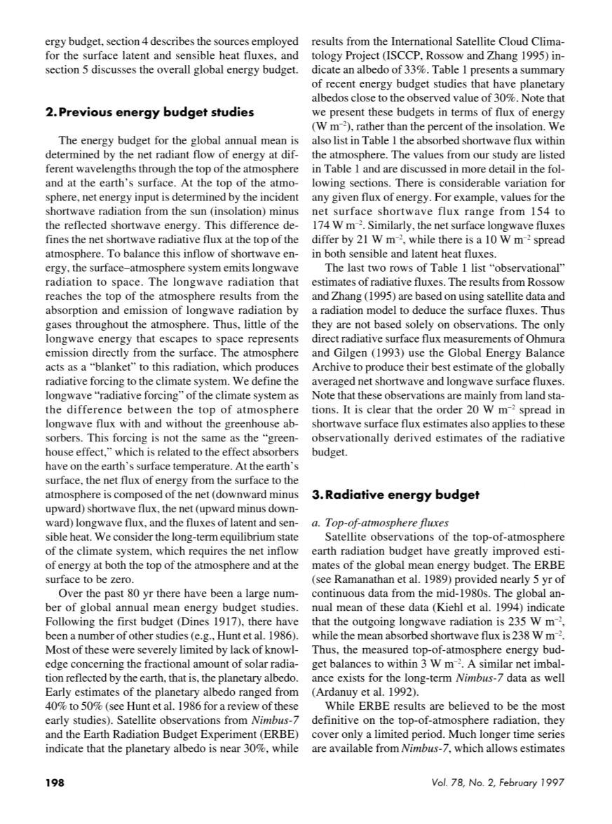 第2节回顾了全球能量预算的以前估计,第3节介绍了我们对长波和短波能量预算的模型计算,第4节描述了地表潜热通量和显热通量的来源,第5节讨论了全球总体能源预算。