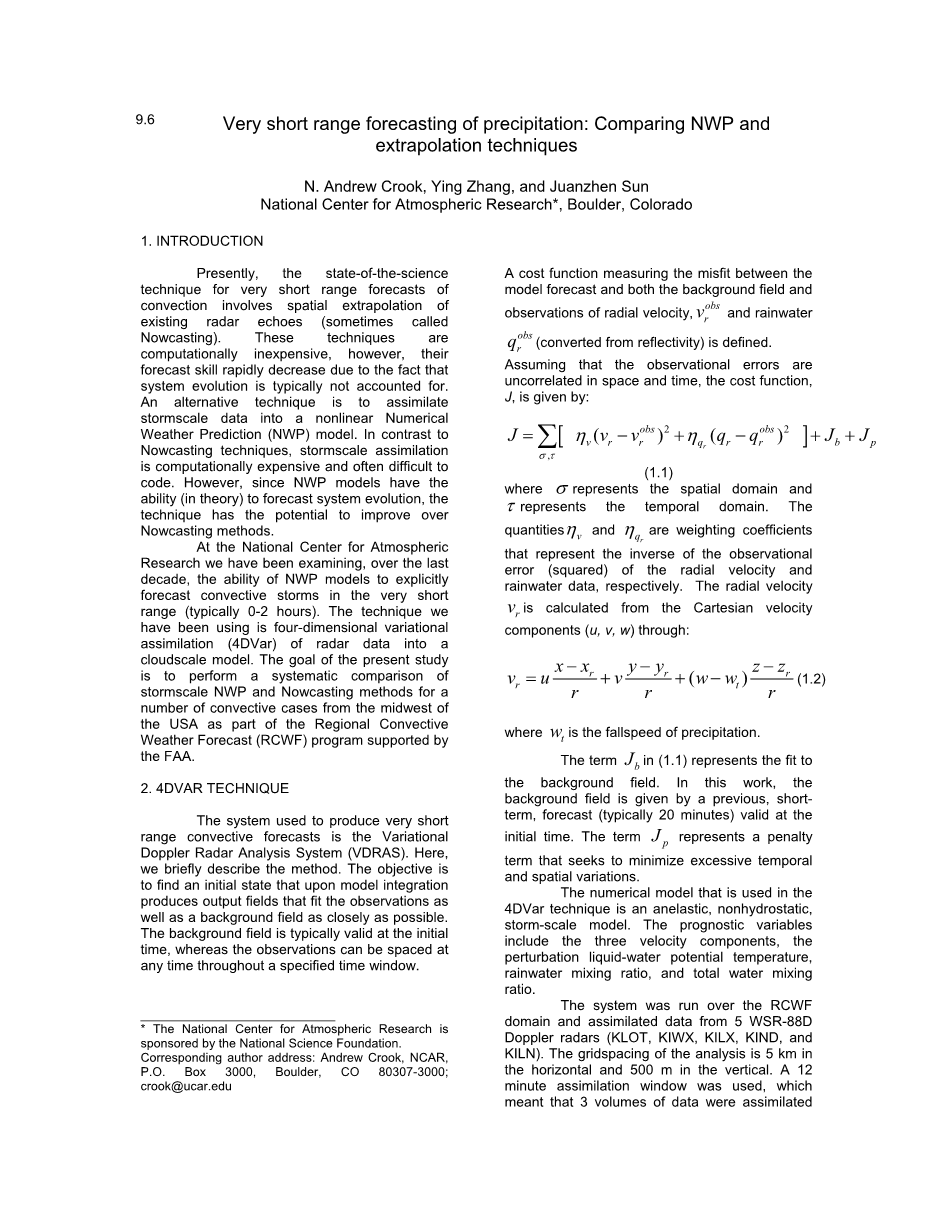 在国家大气研究中心,我们在过去十年中一直在研究NWP模型在很短的范围(通常为0-2小时)内明确地预测对流风暴的能力。 我们使用的技术是将雷达数据的四维变分同化(4DVar)转换为云规模模型。 本研究的目的是对美国中西部地区的一些对流案例进行风暴式NWP和Nowcasting方法的系统比较,作为FAA支持的区域对流天气预报(RCWF)计划的一部分。