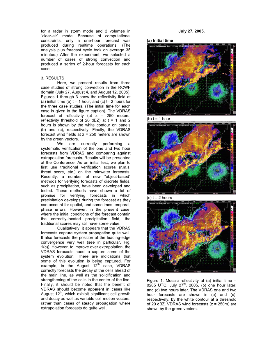 我们正在对VDRAS进行一个和两个小时的预测进行系统的验证,并与外推预测进行比较。 会议将提交结果。 作为初步测试,我们计划首先将传统的验证分数(r.m.s,威胁等级)用于雨水预报。最近,已经开发和测试了一些用于验证诸如降水等离散场的预测的新的“基于对象”的方法。 这些方法已经显示出很多希望,用于验证预测中的降水发展的预测,因为它们可以解释空间,有时是时间性的相位误差。 然而,在目前情况下,预测的初始条件包含正确定位的降水场,传统得分可能仍然具有一定的价值。