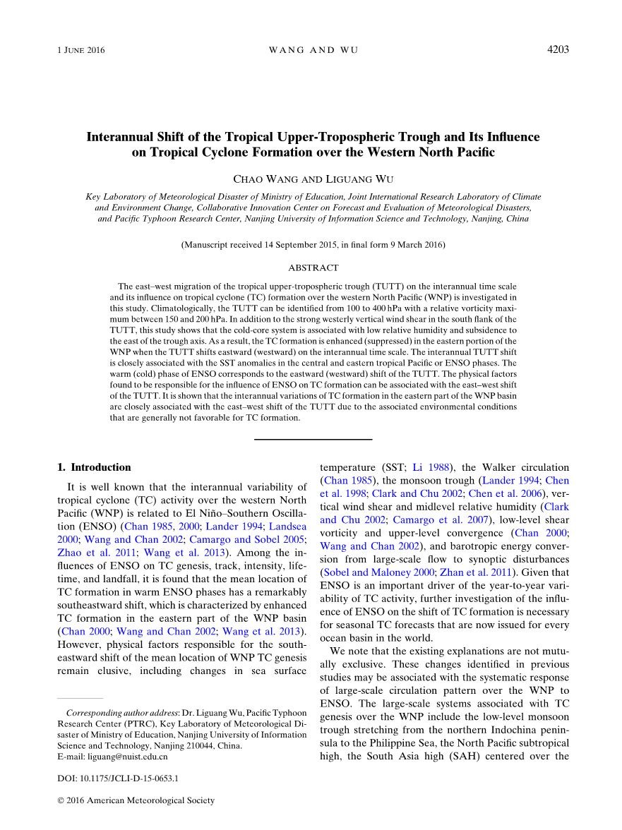 热带对流层海槽的年际变化及其影响对西北太平洋热带气旋形成的影响外文翻译资料