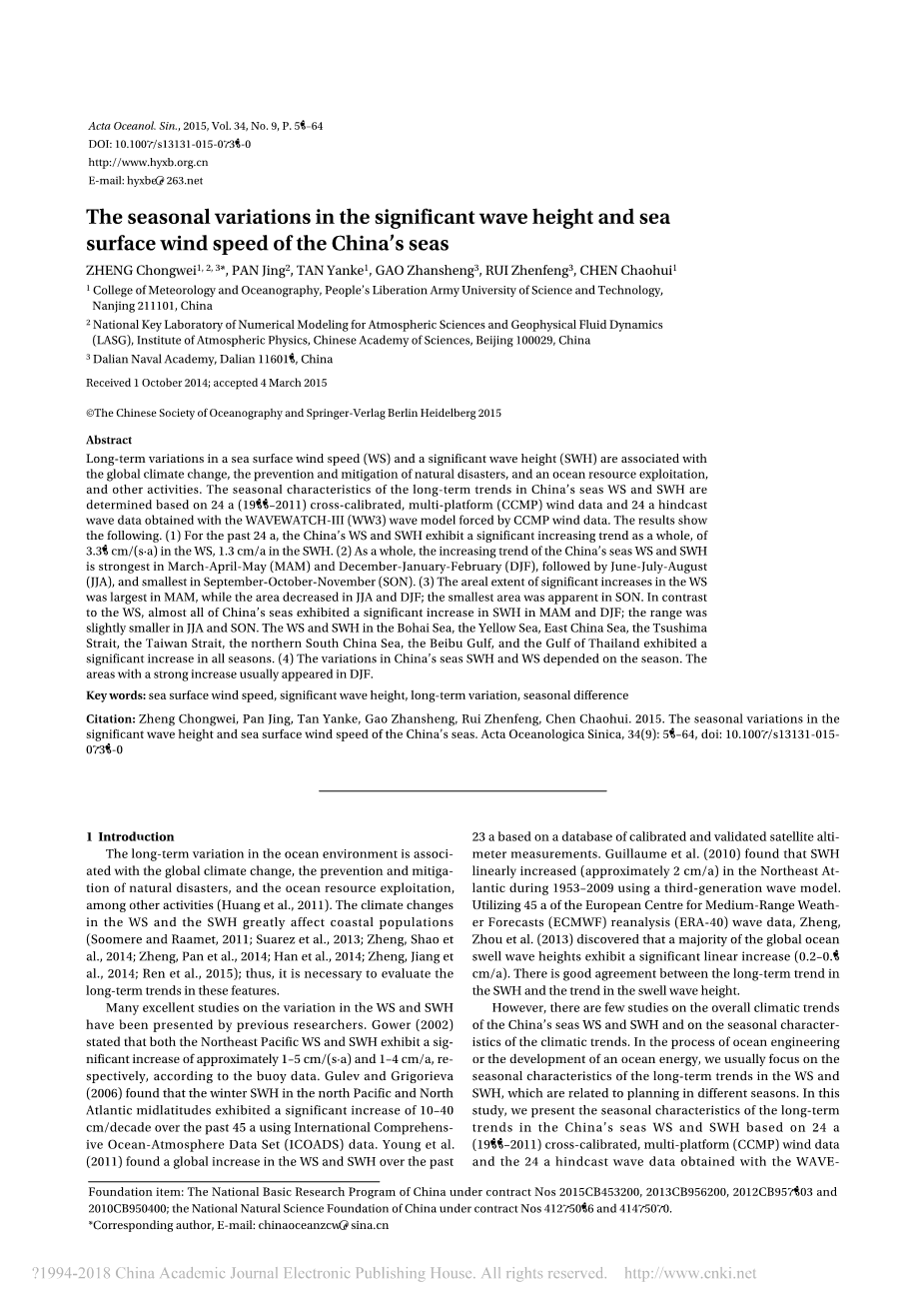 copy;The 中国海洋学学会-出版社柏林海德堡2015