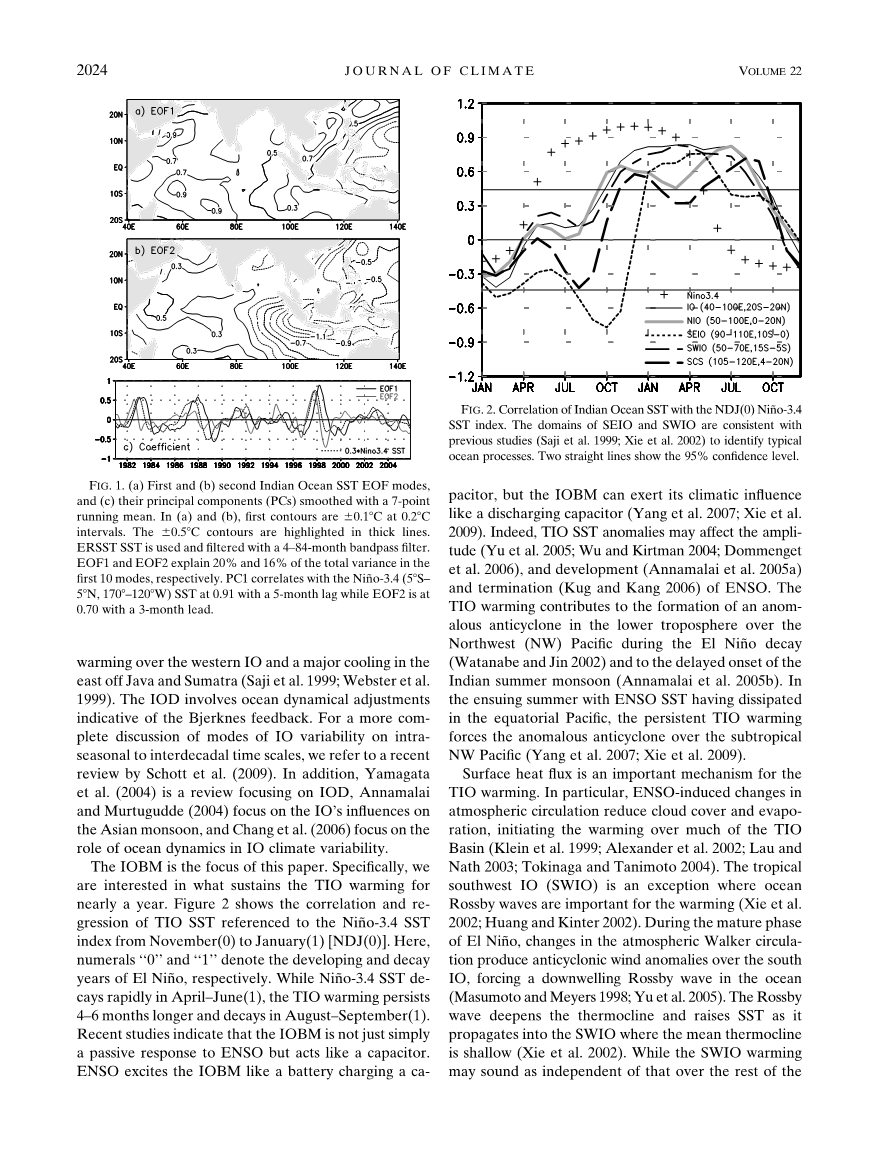 SCS的增暖也会在12月(0)和8月(1)分别达到两次峰值。这两次增暖分别滞后NIO的增暖1-2个月。Chen等