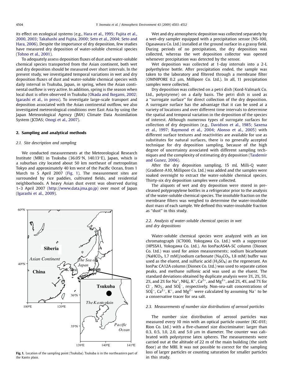我们在日本筑波进行了一些测量,日本筑波是一个郊区城市,它位于东京大都会东北30km和太平洋西部40km交界处,时间从3月1日到4月5日,测量点被水稻田,耕地和居民区包围。一次严重的沙尘事件在2007年4月1到3日在日本大多处被观测到.