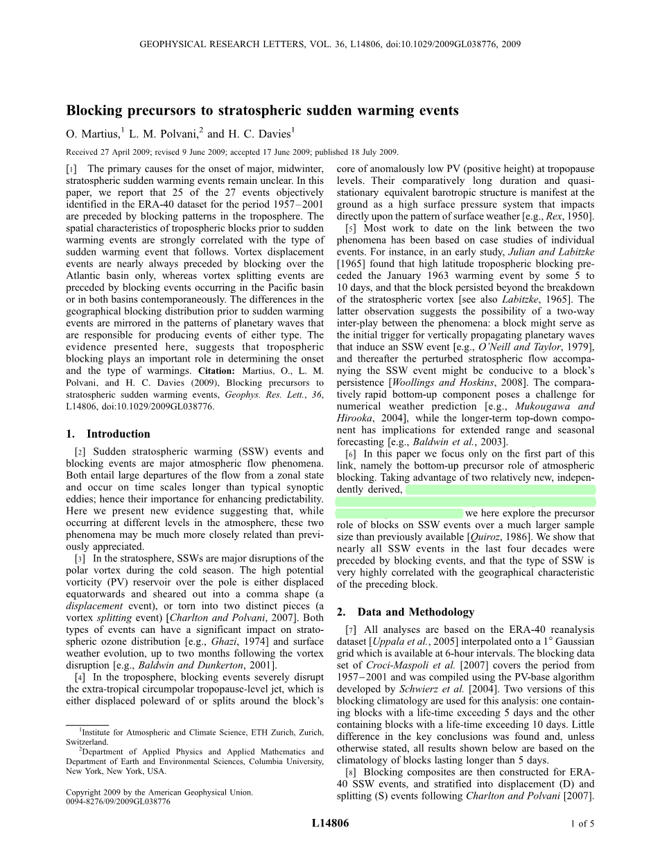 O. Martius,1 L. M. Polvani,2和H. C. Davies1