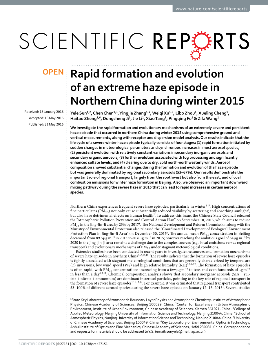 Yele Sun1,2 ,Chen Chen1,3, Yingjie Zhang1,4, Weiqi Xu1,5, Libo Zhou1, Xueling Cheng1, Haitao Zheng1,6, Dongsheng Ji1, Jie Li1, Xiao Tang1, Pingqing Fu1 amp; Zifa Wang1