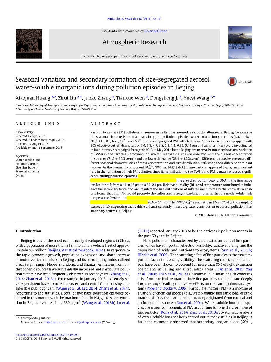 Xiaojuan Huang a,b, Zirui Liu a,, Junke Zhang a, Tianxue Wen a, Dongsheng Ji a, Yuesi Wang a,