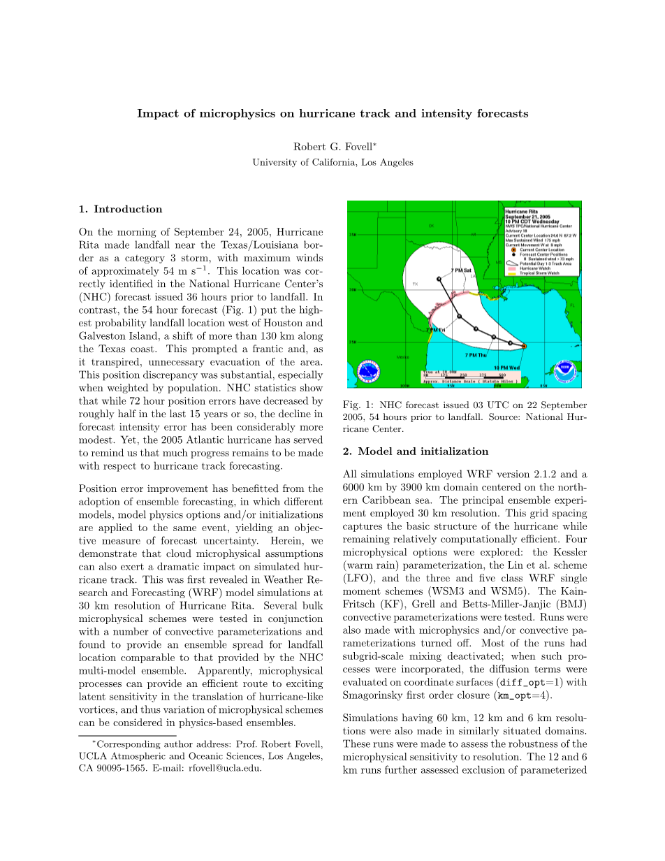 位置误差的改善得益于采用集合预报,不同模型,物理模型的选择和/或初始化应用于相同的事件,产生了客观衡量预测的不确定性。在这里,我们证明云微物理假设也可以对模拟飓风轨道产生巨大的影响。这在天气研究和预报(WRF)模型模拟分辨率为30公里的飓风“丽塔”中首次得到证实。几个微物理方案与多个对流参数化方案结合测试综合得到的登陆位置可以和由NHC多模式规定的相媲美。显然,微物理过程可以提供一个有效的途径来激发飓风般的涡流转变中的潜在敏感性,因此微物理方案的变化可以在物理基础上进行考虑。