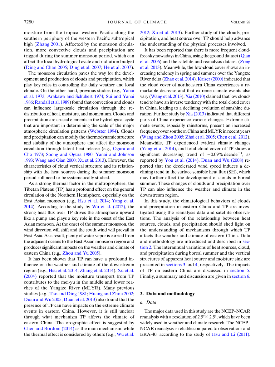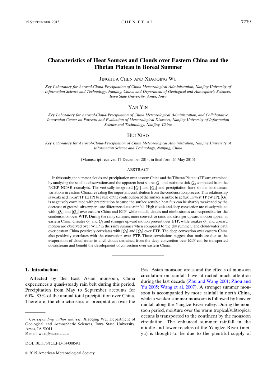 华北夏季中国东部和青藏高原热源和云系的特征外文翻译资料