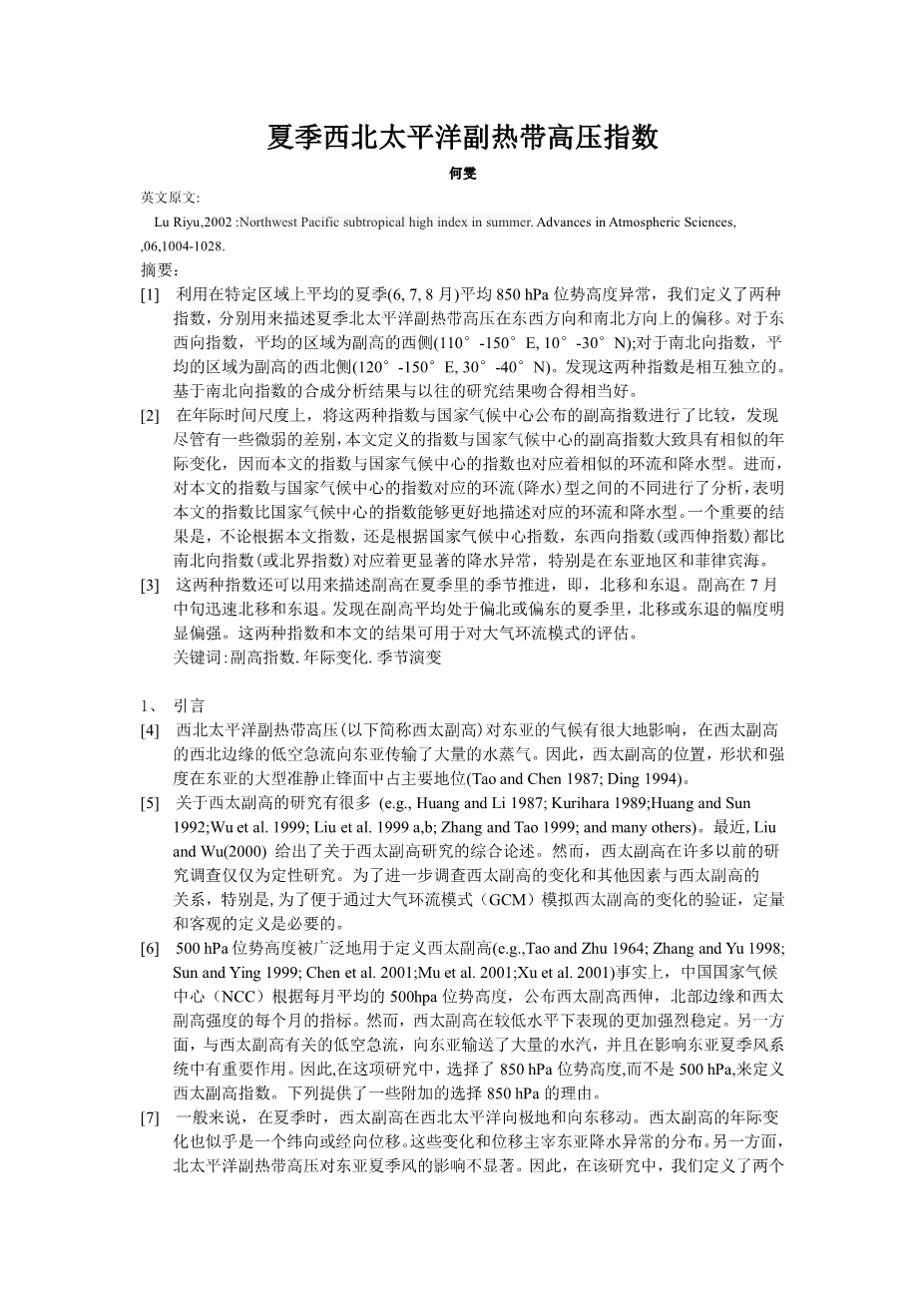 夏季西北太平洋副热带高压指数外文翻译资料 2023-02-25 12:12:16 英语原文共 25 页,剩余内容已隐藏,支付完成后下载完整资料 英语译文共 22 页,剩余内容已隐藏,支付完成后下载完整资料 资料编号:[30460],资料为PDF文档或Word文档,PDF文档可免费转换为Word 您需要先支付 30元 才能查看全部内容!立即支付 发小红书推广免费获取该资料资格。点击链接进入获取推广文案即可: Ai一键组稿 | 降AI率 | 降重复率 | 论文一键排版 PREVIOUS NEXT 您可能感兴趣的文章 不同云微物理方案对重庆一次暴雨过程数值模拟的影响研究文献综述 厄尔尼诺的差异 对衰减年东亚夏季风降水的影响文献综述 广东省佛山一次龙卷风暴的数值模拟分析文献综述 索马里急流的年代际变化及其与海表温度的关系文献综述 不同边界层参数化方案对一次梅雨锋暴雨过程湍流交换特征模拟的影响开题报告 2012年10号台风“达维”登陆降水非对称成因观测及数值模拟分析文献综述 东非降水年际变化及北大西洋上空环流对其影响开题报告 24GHz调频连续波雷达信号研究与天线设计仿真文献综述 裸土期O3干沉降过程的分析开题报告 山西地区植被对气候变化的响应文献综述