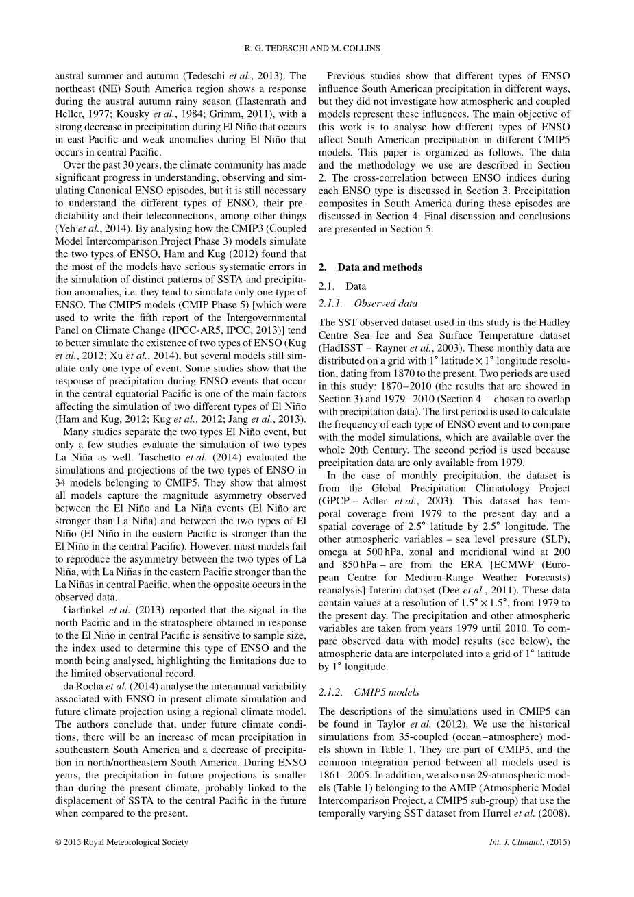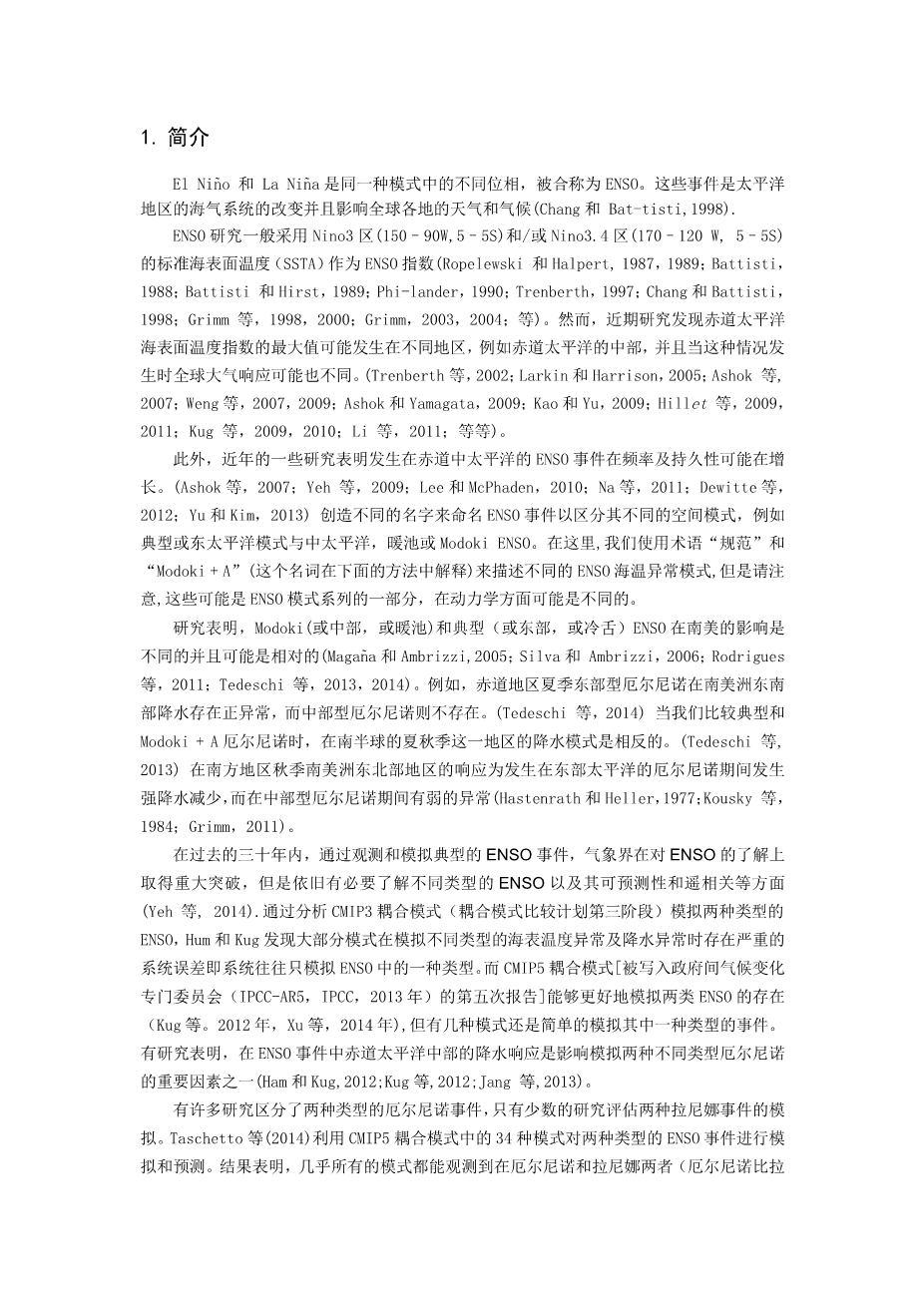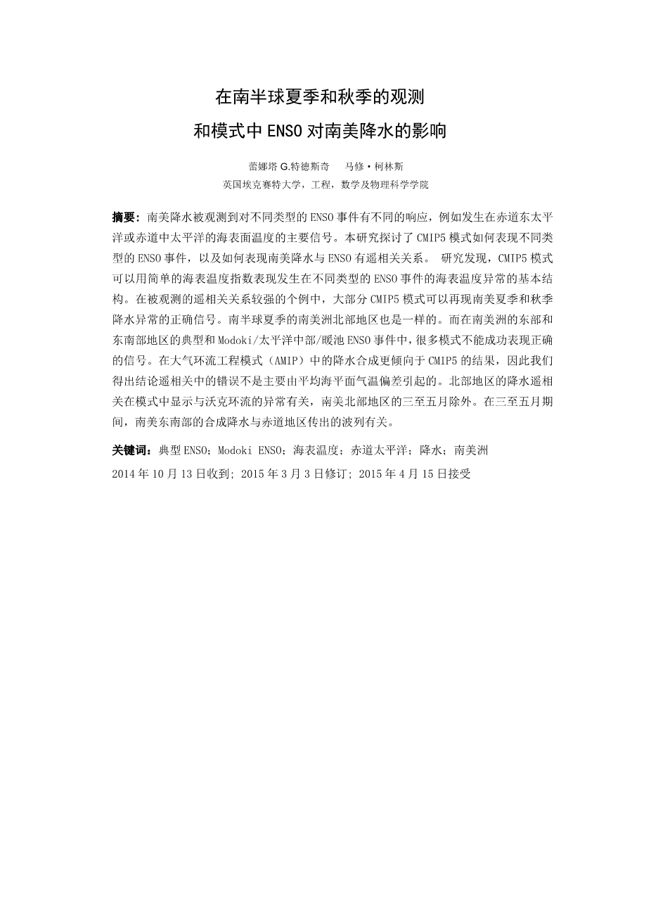 在南半球夏季和秋季的观测和模式中ENSO对南美降水的影响外文翻译资料