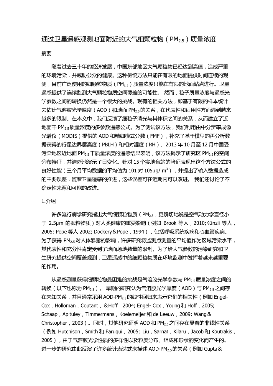 通过卫星遥感观测地面附近的大气细颗粒物( PM2.5 )质量浓度外文翻译资料 2023-03-03 17:27:09 英语原文共 11 页,剩余内容已隐藏,支付完成后下载完整资料 英语译文共 18 页,剩余内容已隐藏,支付完成后下载完整资料 资料编号:[22137],资料为PDF文档或Word文档,PDF文档可免费转换为Word 您需要先支付 30元 才能查看全部内容!立即支付 发小红书推广免费获取该资料资格。点击链接进入获取推广文案即可: Ai一键组稿 | 降AI率 | 降重复率 | 论文一键排版 PREVIOUS NEXT 您可能感兴趣的文章 不同云微物理方案对重庆一次暴雨过程数值模拟的影响研究文献综述 厄尔尼诺的差异 对衰减年东亚夏季风降水的影响文献综述 广东省佛山一次龙卷风暴的数值模拟分析文献综述 索马里急流的年代际变化及其与海表温度的关系文献综述 不同边界层参数化方案对一次梅雨锋暴雨过程湍流交换特征模拟的影响开题报告 2012年10号台风“达维”登陆降水非对称成因观测及数值模拟分析文献综述 东非降水年际变化及北大西洋上空环流对其影响开题报告 24GHz调频连续波雷达信号研究与天线设计仿真文献综述 裸土期O3干沉降过程的分析开题报告 山西地区植被对气候变化的响应文献综述