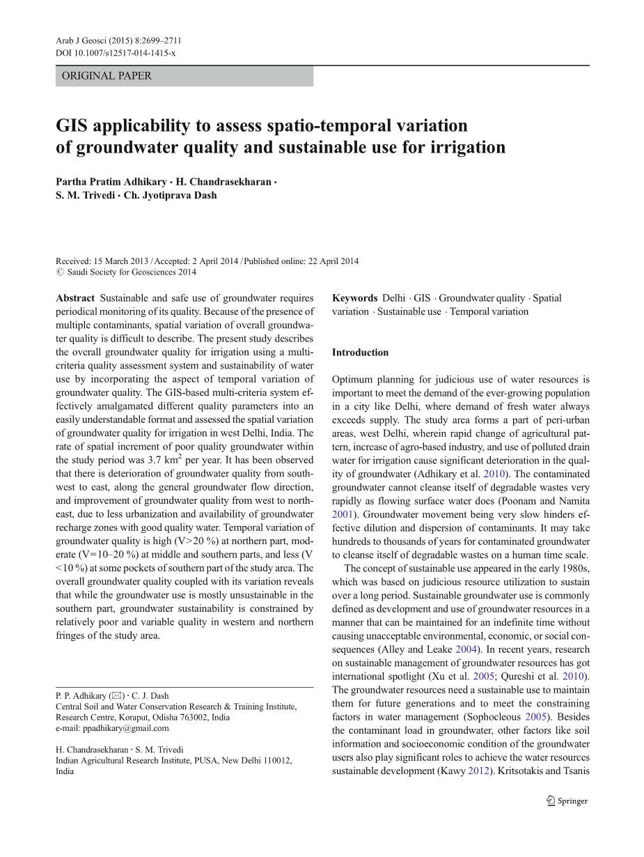 Partha Pratim Adhikary amp; H. Chandrasekharan amp;